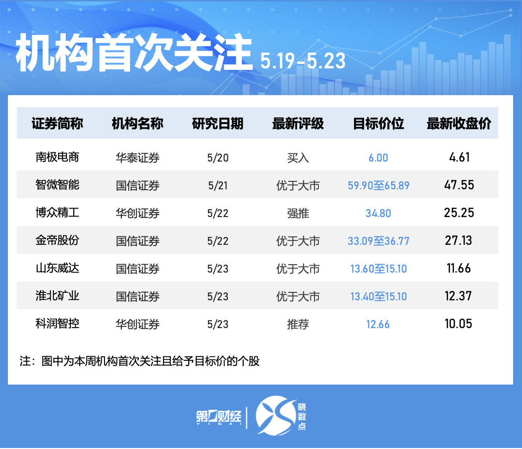 机构本周首次关注50只个股高亿管理,7股被给予目标价。