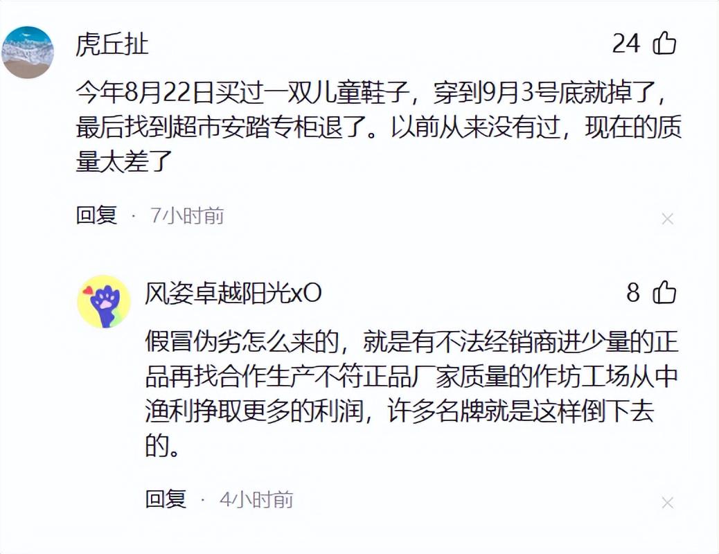但在2024年,安踏却因质量问题被315曝光。之后又多次被投诉产品掺杂掺假,消费者“不会再买”的呼声此起彼伏,严重损害了安踏在消费者心中的品牌形象。