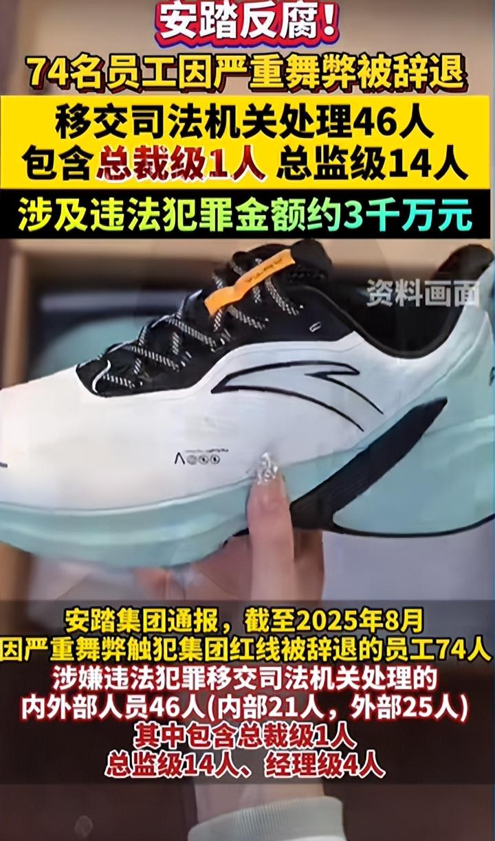 《安踏:46人(总裁级1人、总监级14人)被移交至司法机关》